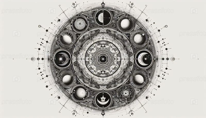 Художественное произведение из тонких линий священной геометрии, Ai generated image