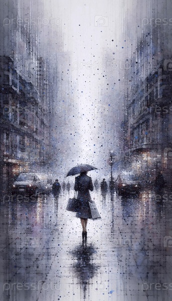 Женщина в акварели с точки дождя, Ai generated image