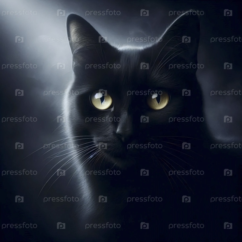 Мистический черный кот с желтыми глазами портрет, Ai generated image