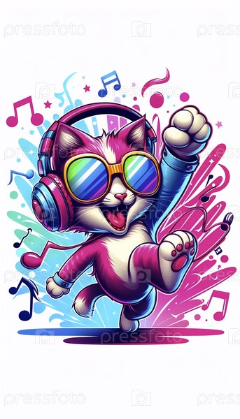 Танцующий кот с наушниками Наклейка на канаве, Ai generated image
