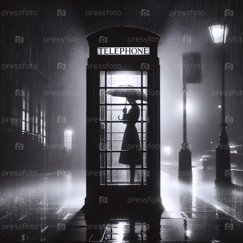 Силуэт дождливой телефонной будки, Ai generated image