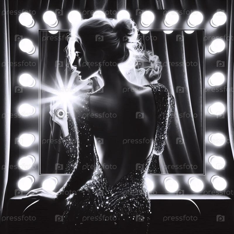 Женщина наносит помаду в зеркало раздевалки, Ai generated image