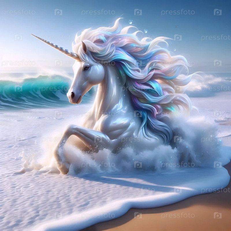 Единорог в морской пены, Ai generated image