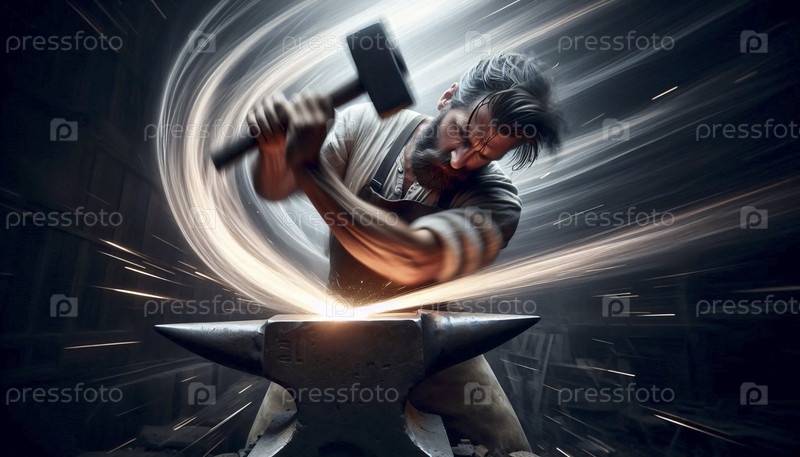 Фотография с длительной экспозицией, захватывающий удар молоток кузнеца, Ai generated image