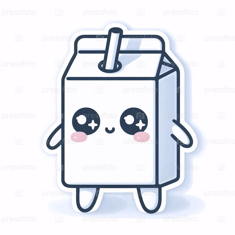 Милый стикер кавайи на улыбающейся коробке с молоком, Ai generated image
