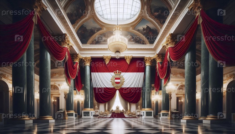 Австрийский флаг в декоре императорского дворца, Ai generated image