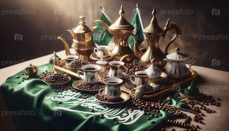 Саудовский флаг в традиционной церемонии кофе, Ai generated image