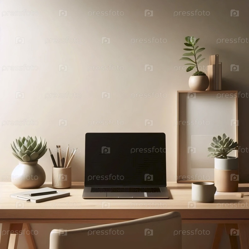 Минималистическое рабочее пространство с нейтральным тоном, Ai generated image