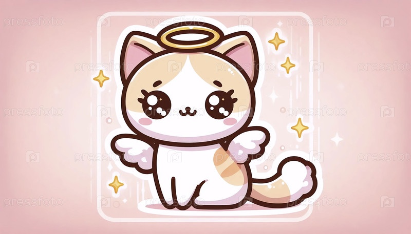 Милая kawaii angel cat наклейка с головой, Ai generated image