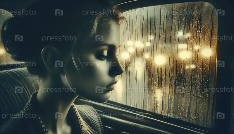 Дождливый портрет из окна такси, Ai generated image