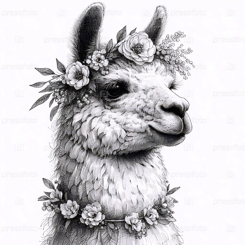 Ллама с цветочными чернилами рисование художественная печать, Ai generated image
