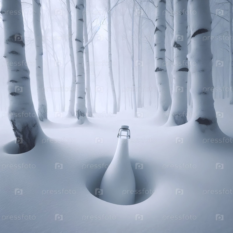 Мокет стеклянной бутылки мороженого, частично похороненный в свежем изображении, созданном AI