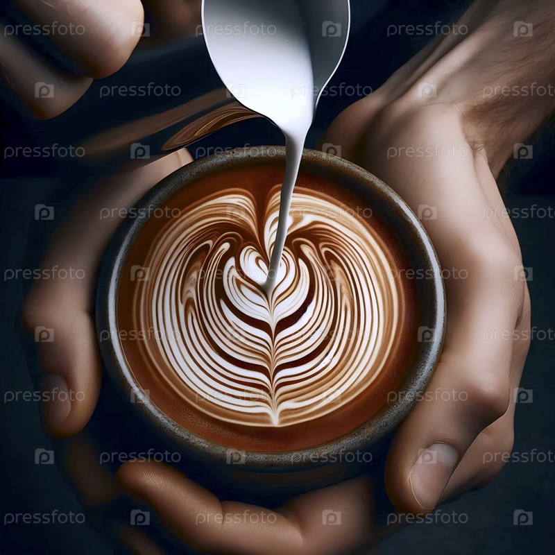 Мастер-класс бариста: точный момент создания латте в оживленном городском кафе, Ai generated image