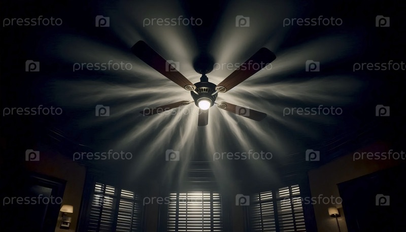 Потолочный вентилятор в темной гостиной, Ai generated image