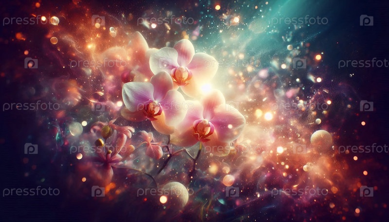 Орхидея со сверкающими частицами, Ai generated image