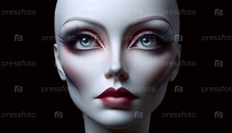Макияж, нанесенный на голову гипсового парика, Ai generated image