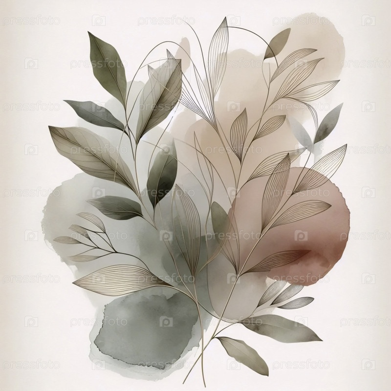 Бохо ботанический настенный принт с абстрактным акварелем, Ai generated image