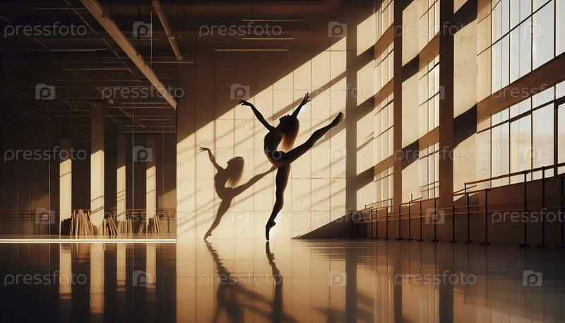 Идеальная танцевальная тень на стене тренировочного зала, Ai generated image