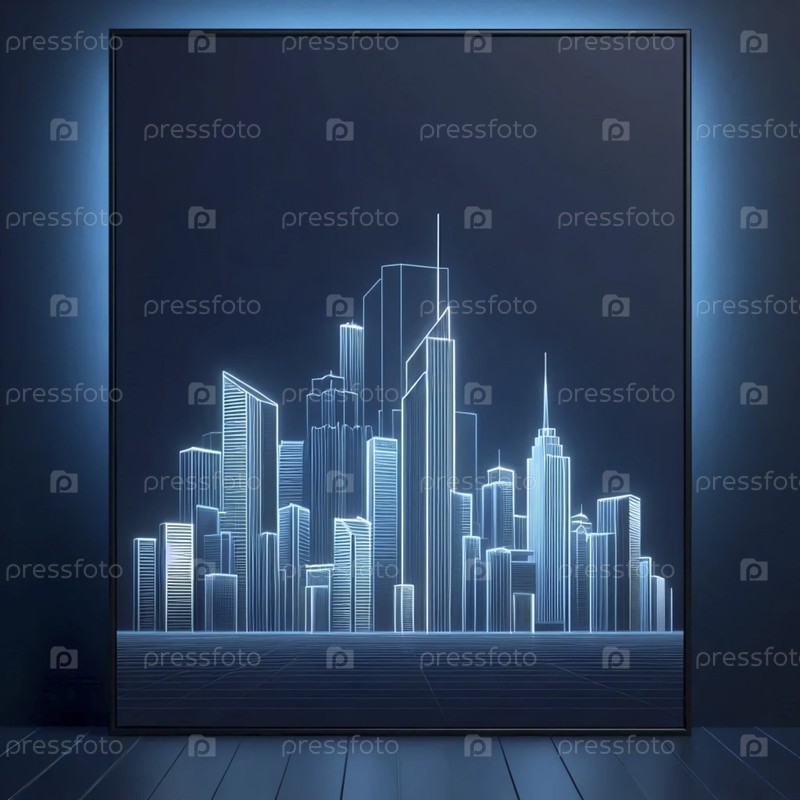 Цифровой неоновый городской горизонт художественный плакат, Ai generated image