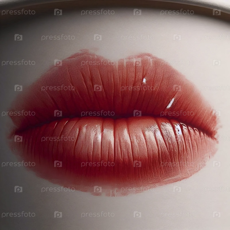 Макросъемка одного идеального отпечатка губ на краю чашки, Ai generated image