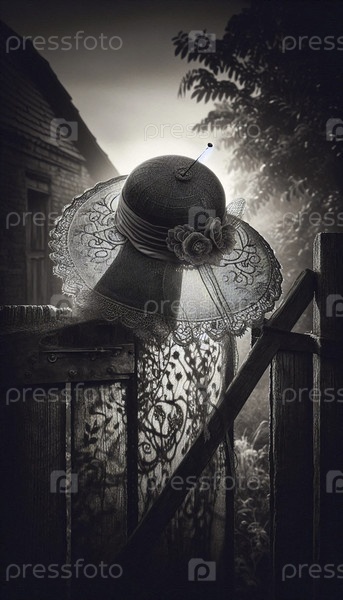 Женская шляпа с завесой, прикрепленная к воротам сада, Ai generated image
