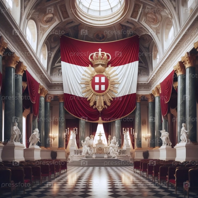 Австрийский флаг в декоре императорского дворца, Ai generated image