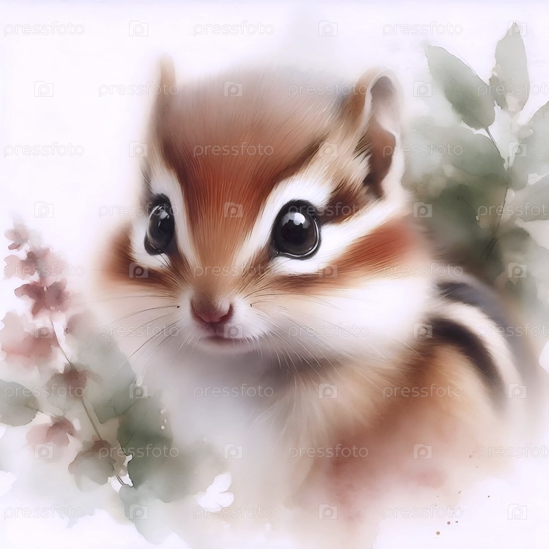 А Sweet Chipmunk акварельный художественный печат, Ai generated image
