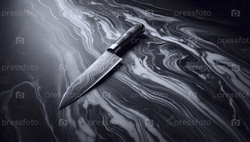 Мокет ножа повара из полированной стали на бурно-серой мраморной поверхности, Ai generated image