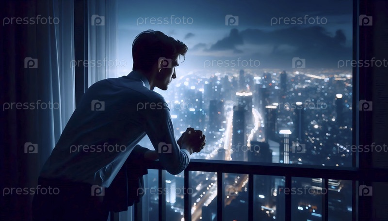 Момент предпринимательских амбиций с видом на яркий, ночной городской пейзаж Ай создал образ