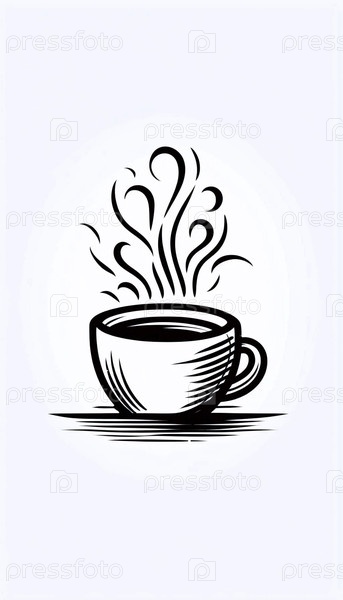 Простая чашка кофе чернила рисование художественная печать, Ai generated image