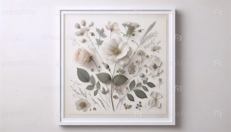 A dried flowers herbarium art print, Ai generated image А сушеные цветы гербария художественная печать, Ай создал изображение