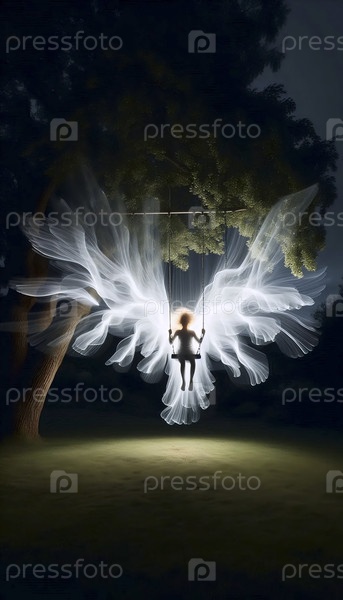 Фотография с длительным воздействием ребенка на качелях в сумерках, Ai generated image