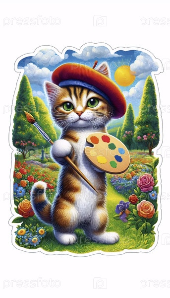 Художник-импрессионист, рисующий кошек на эстафетном стикере, Ai generated image