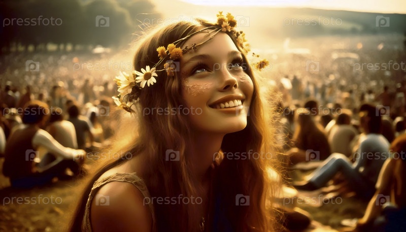 Хиппи-девушка на Вудстоке, Ai generated image A