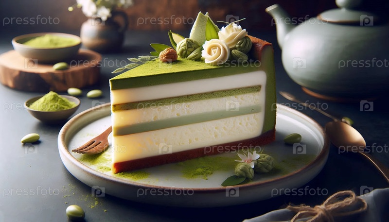 Вырезав сырный торт Matcha, Ai generated image