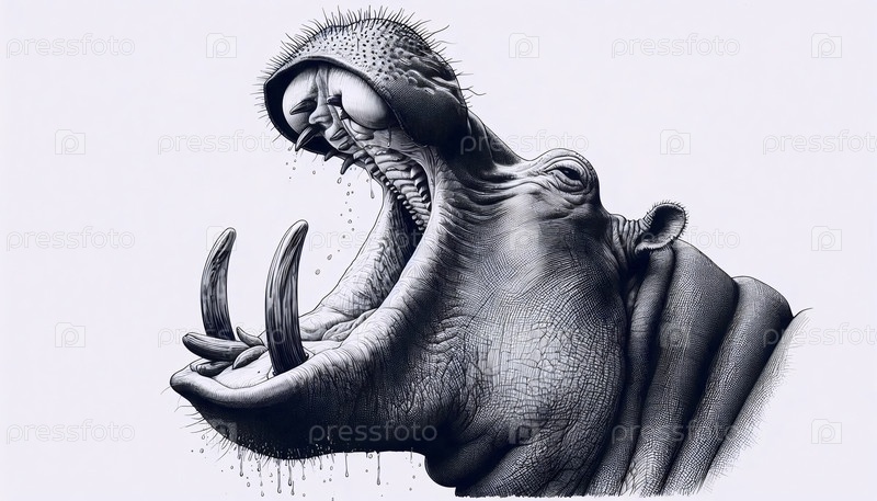 Чихающий бегемот чернил рисуют художественную печать, Ai generated image