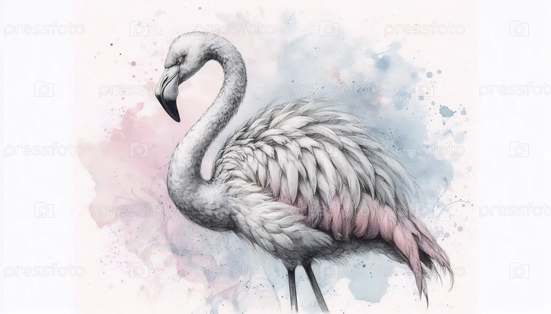 Элегантный чернил фламинго рисует художественную печать, Ai generated image