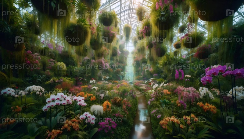 Орхидеи в теплице, Ai generated image
