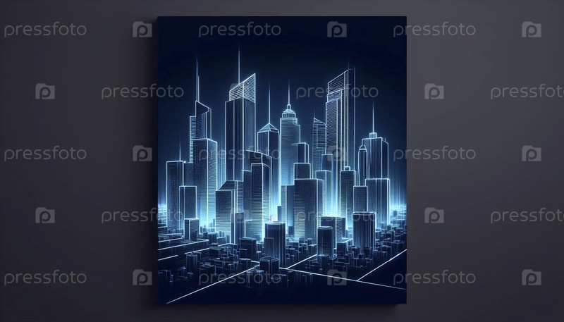 Цифровой неоновый городской горизонт художественный плакат, Ai generated image