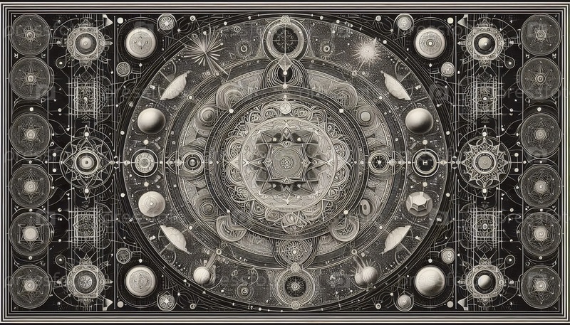 Художественное произведение из тонких линий священной геометрии, Ai generated image