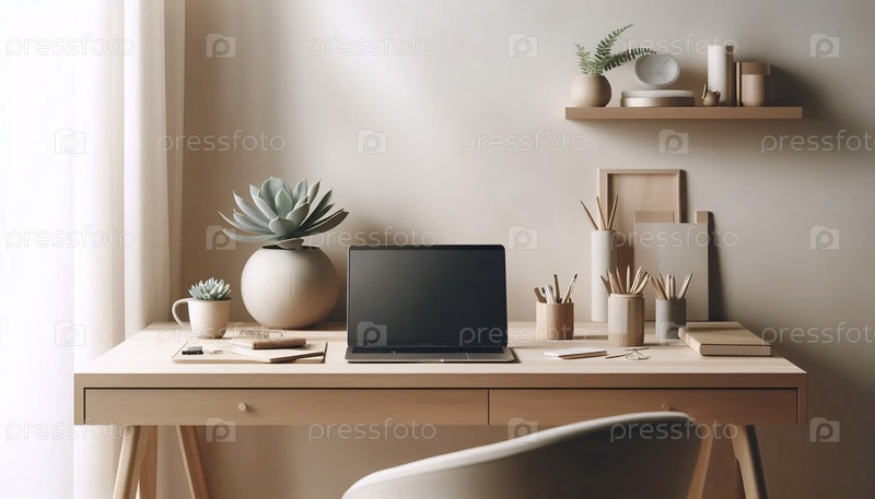 Минималистическое рабочее пространство с нейтральным тоном, Ai generated image
