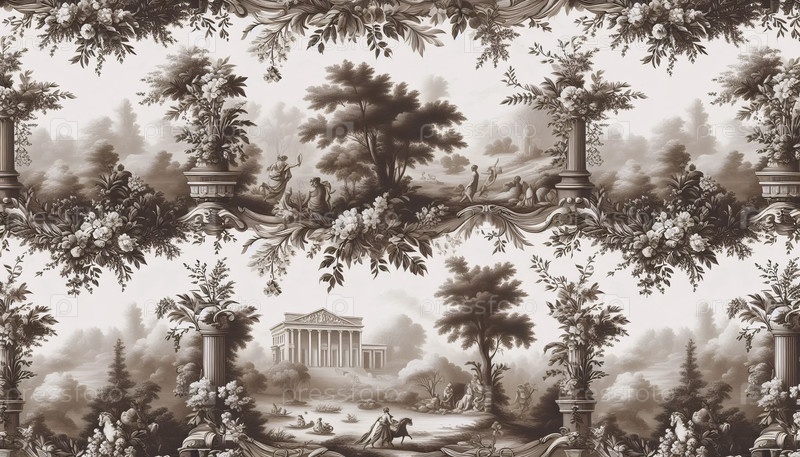 Коричневый цветочный рисунок французский A Toile de Jouy бесшовный дизайн, Ai generated image