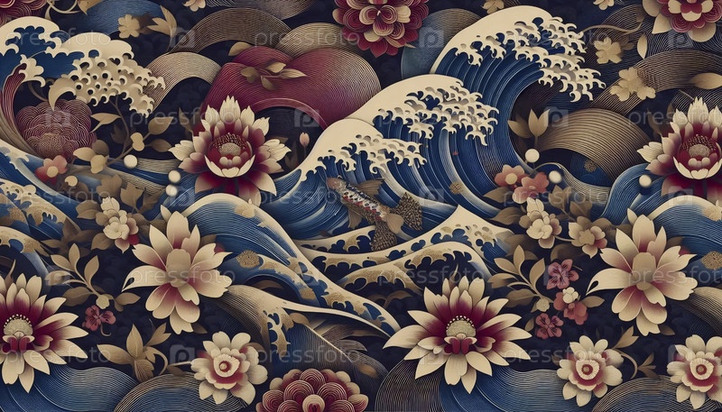 Образцы кимоно Японский шелковый дизайн, Ai generated image A