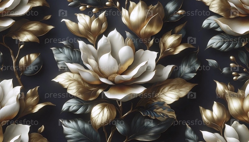 Золотой магнолий шаблон бесшовный дизайн, Ai generated image