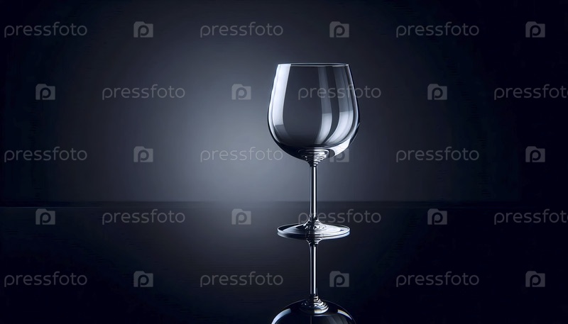 Пустой прозрачный макет винного стекла с длинным стволом, помещенный на отражающую черную поверхность, Ai создал изображение