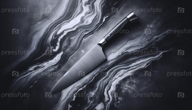 Мокет ножа повара из полированной стали на бурно-серой мраморной поверхности, Ai generated image