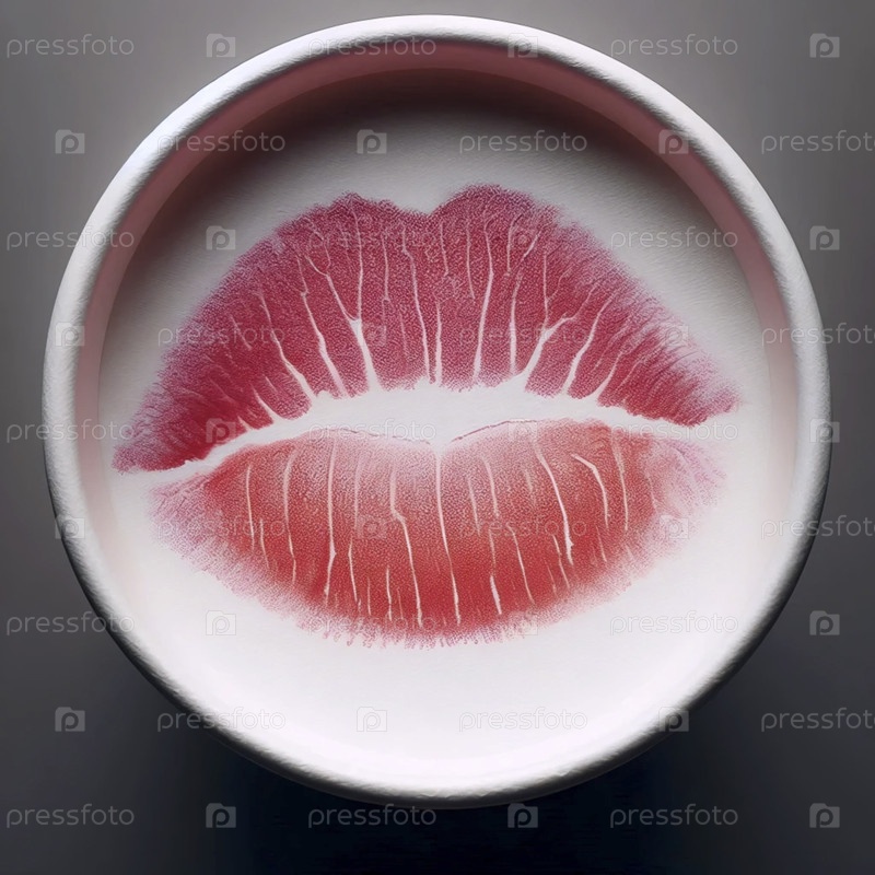 Макросъемка одного идеального отпечатка губ на краю чашки, Ai generated image