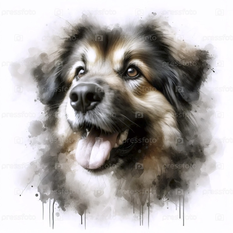 Цифровой акварельный портрет собаки из фото, Ai generated image