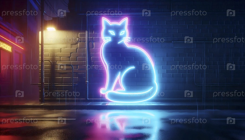Неонный знак кота в киберпанкском уличном искусстве, Ai generated image