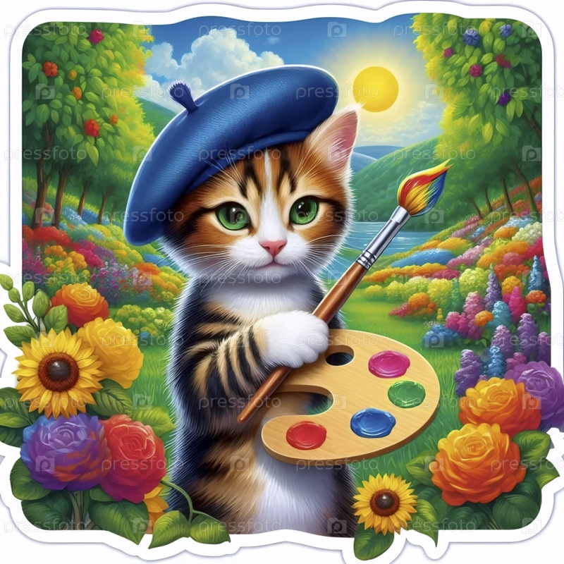 Художник-импрессионист, рисующий кошек на эстафетном стикере, Ai generated image
